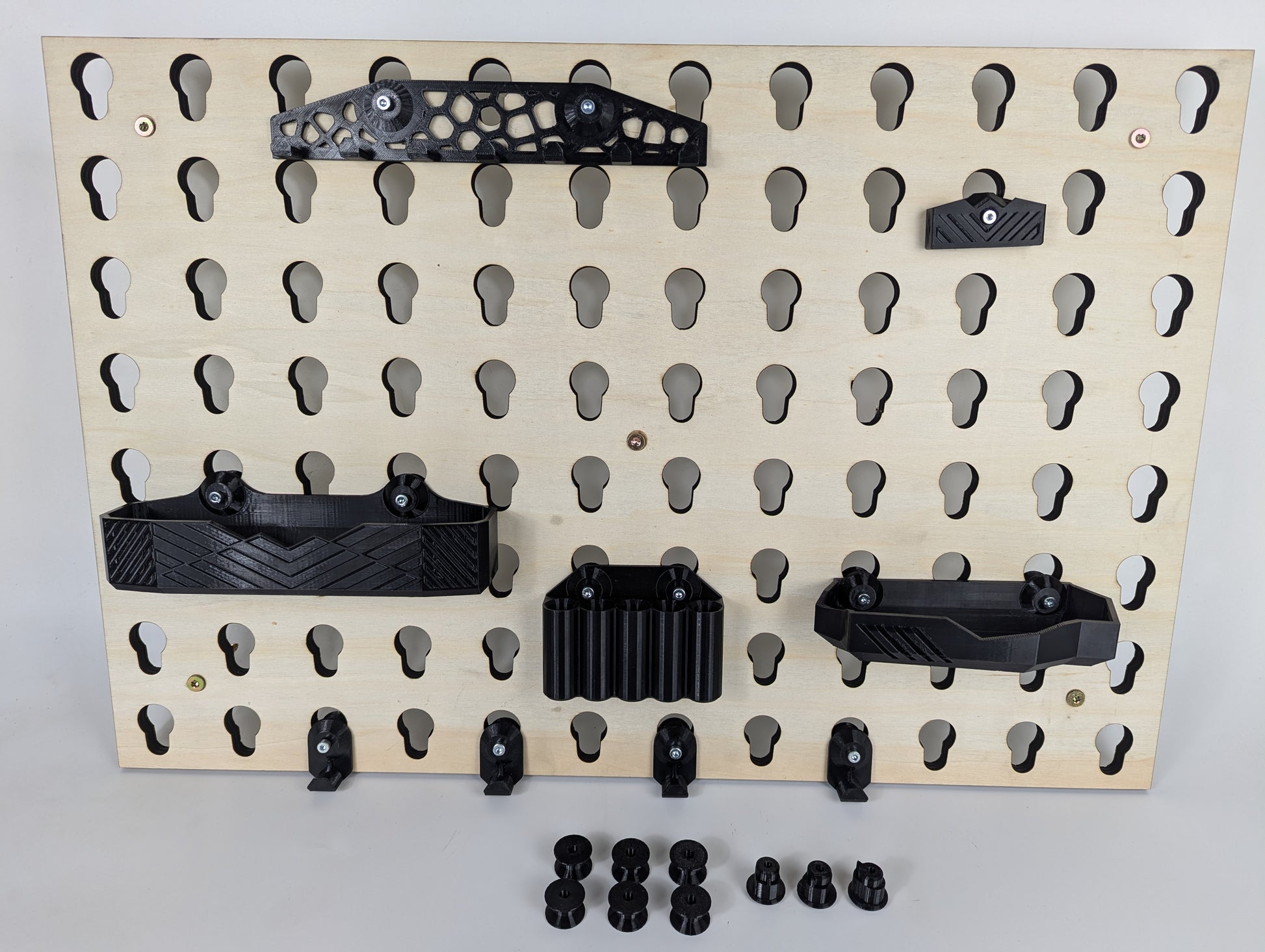 5xSchrauben, 5x Dübel, 1xBrillenhalterung für 2 Brillen, 1x Schlüsselhalterung für 7 Schlüssel, 1x Stiftehalter für 5 Stifte, 2x Schalen für Kleinzeug Aufbewahrung.
